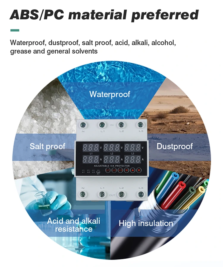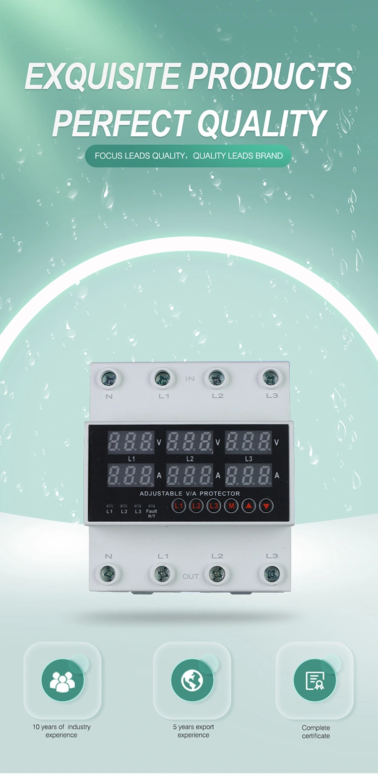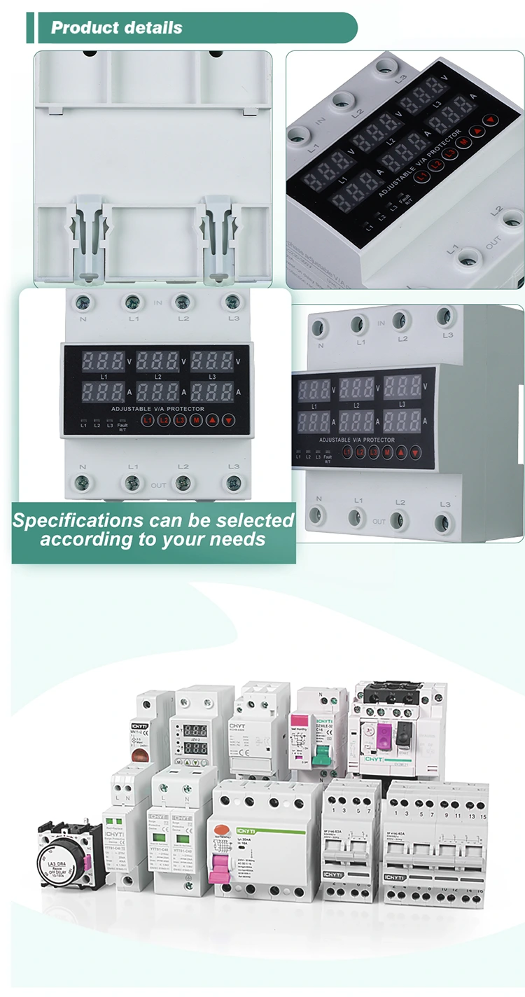 CHVP 4 極三相電圧保護リレーは、電気機器をサージ電圧から保護するための、単相 AC ネットワーク用のマイクロプロセッサベースの電圧監視デバイスです。このデバイスは主電圧を分析し、その電流値をデジタルインジケーターに表示します。電磁リレーにより負荷を開閉します。ユーザーはボタンを使用して現在の電圧値と遅延時間を設定できます。値は不揮発性メモリに保存されます。接続にはアルミ線や銅線が使用できます。